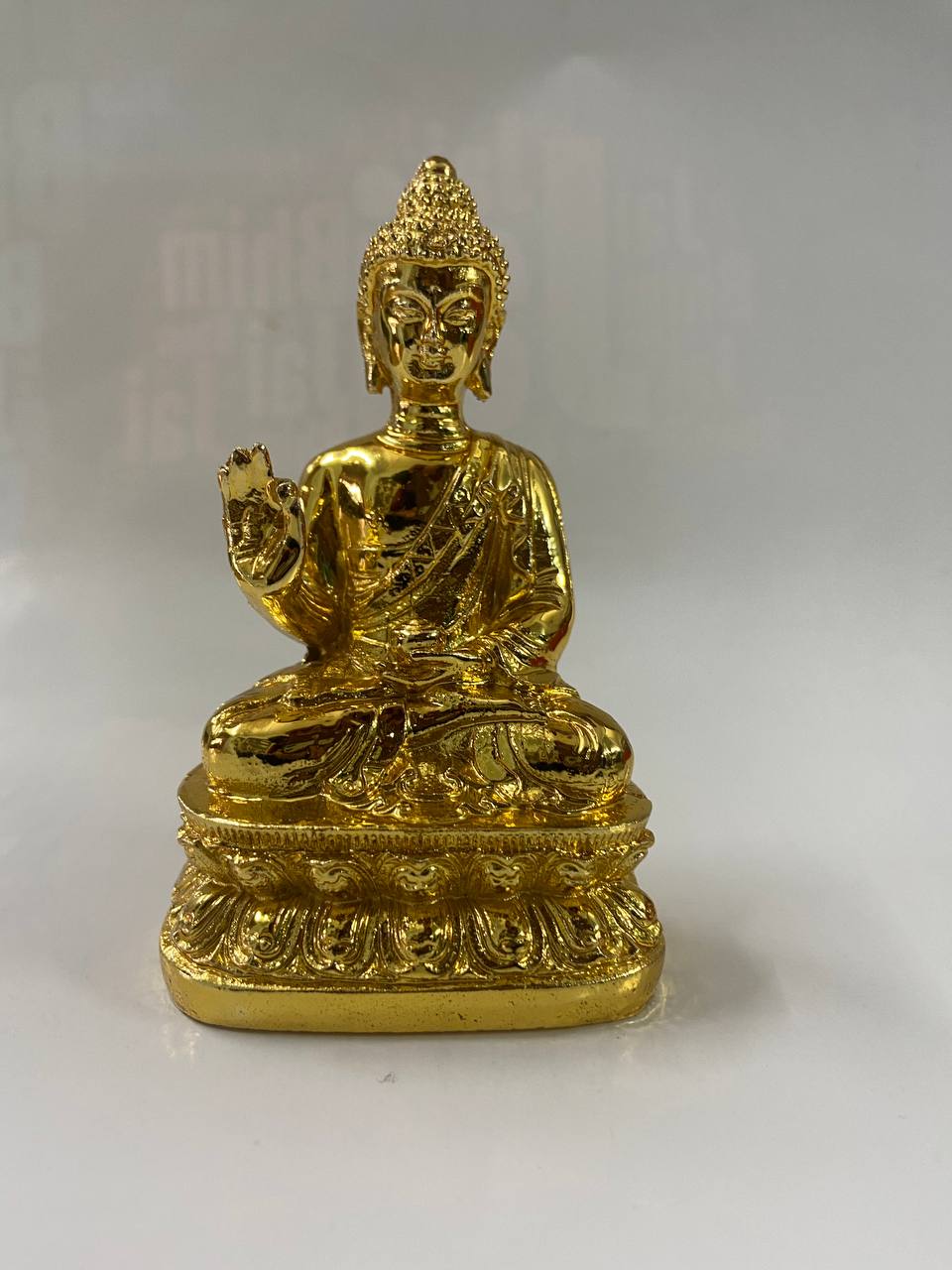 This Buddha Golden Statue is a symbol of peace and enlightenment. Made with high-quality materials and intricate craftsmanship, it radiates serenity and tranquility. With its striking gold finish, it adds a touch of elegance and spirituality to any room. Perfect for meditation and home decor.