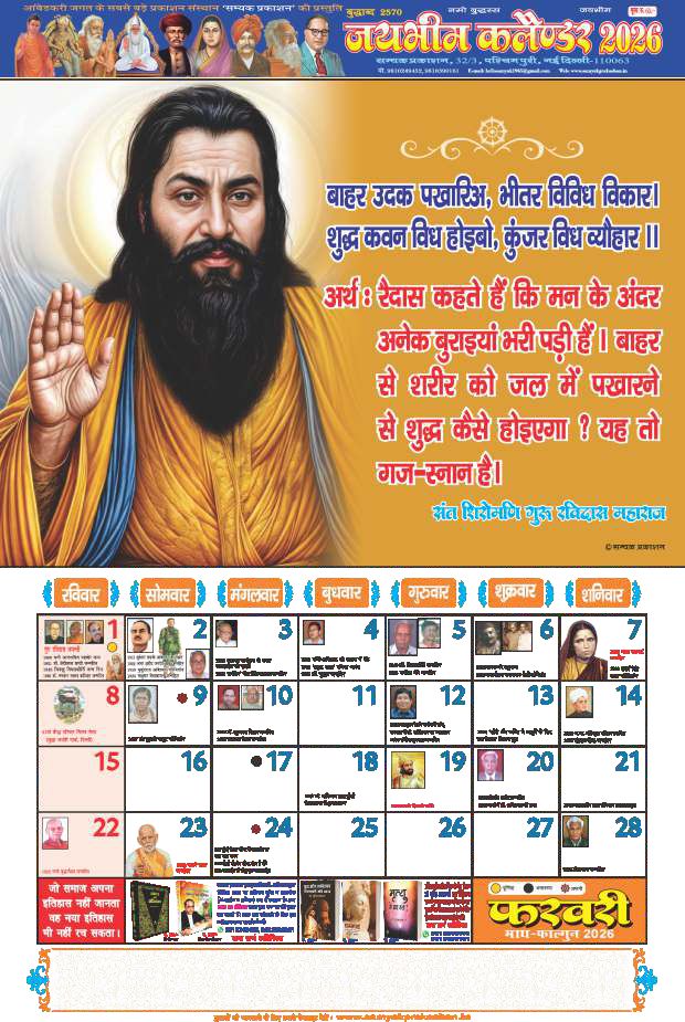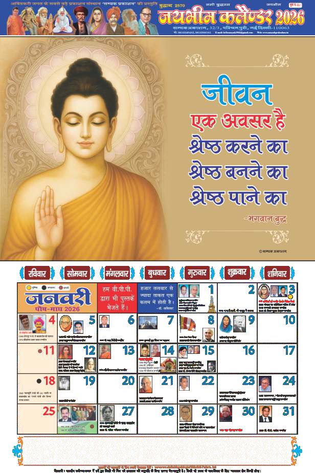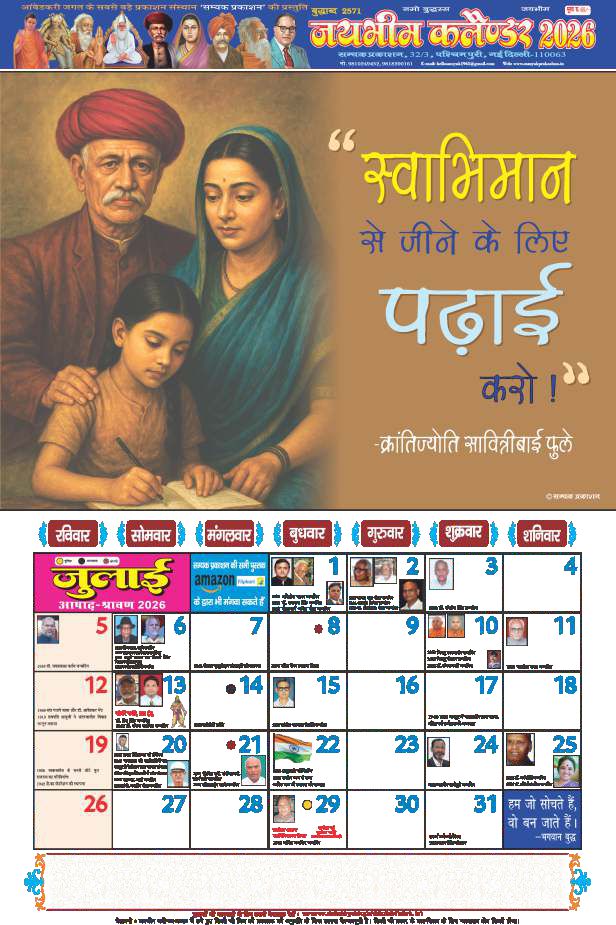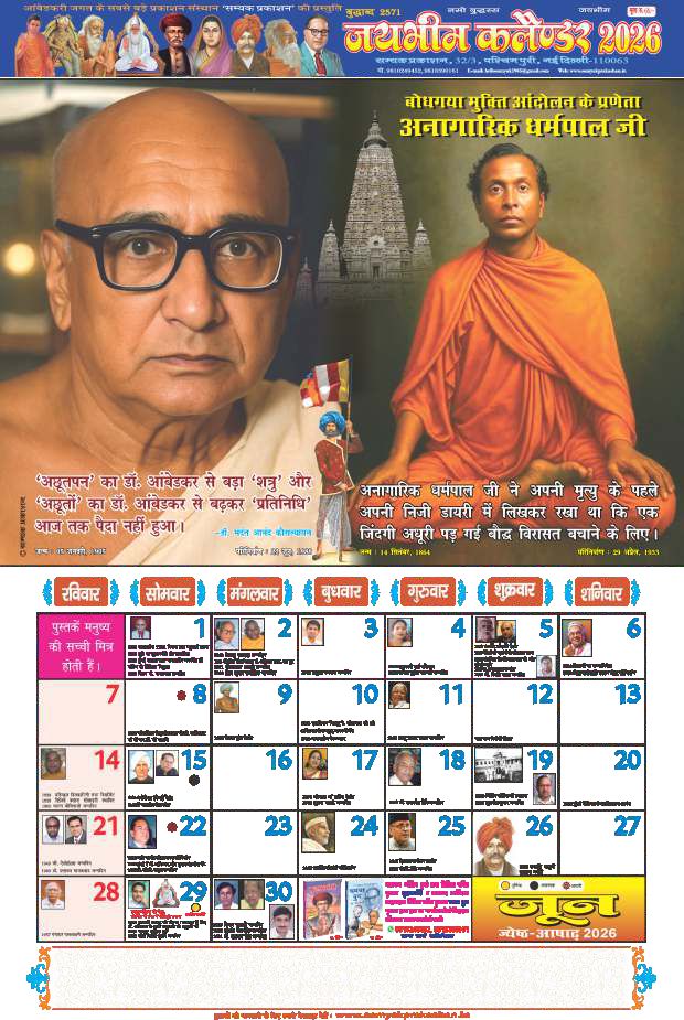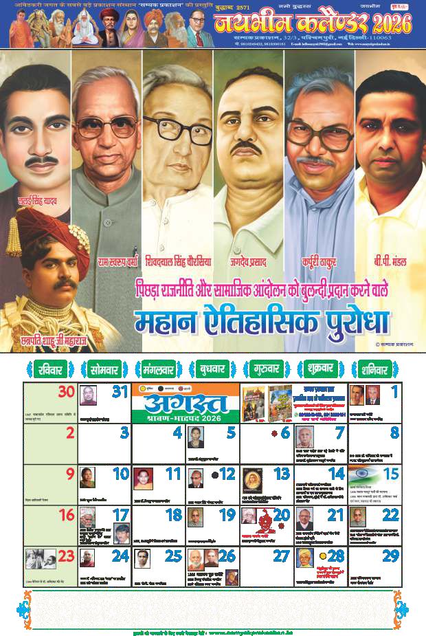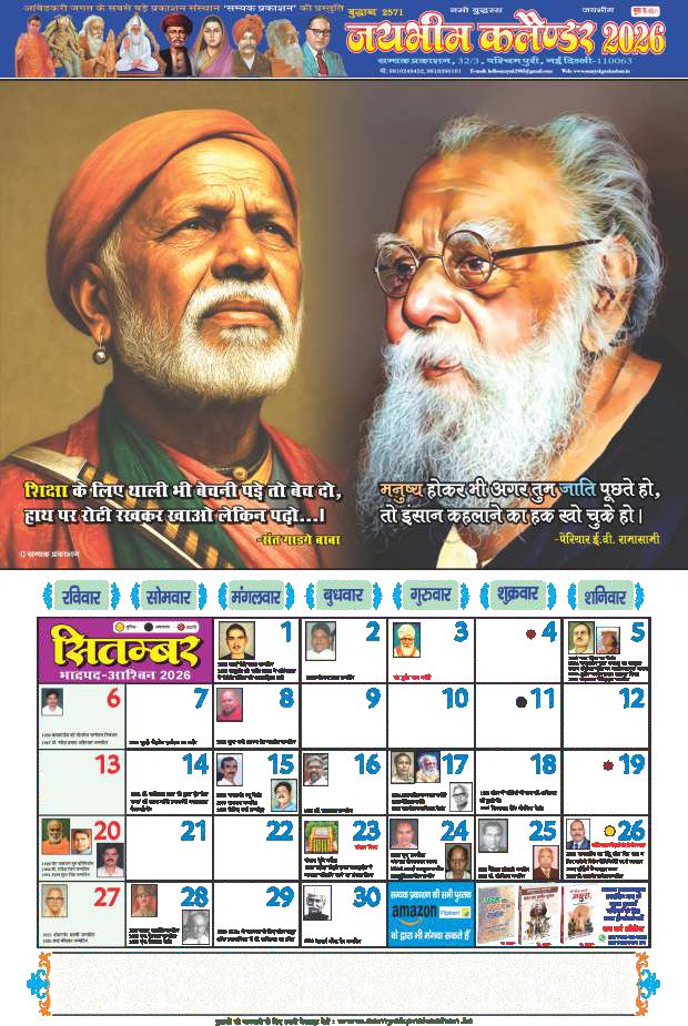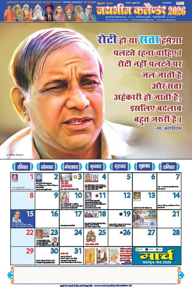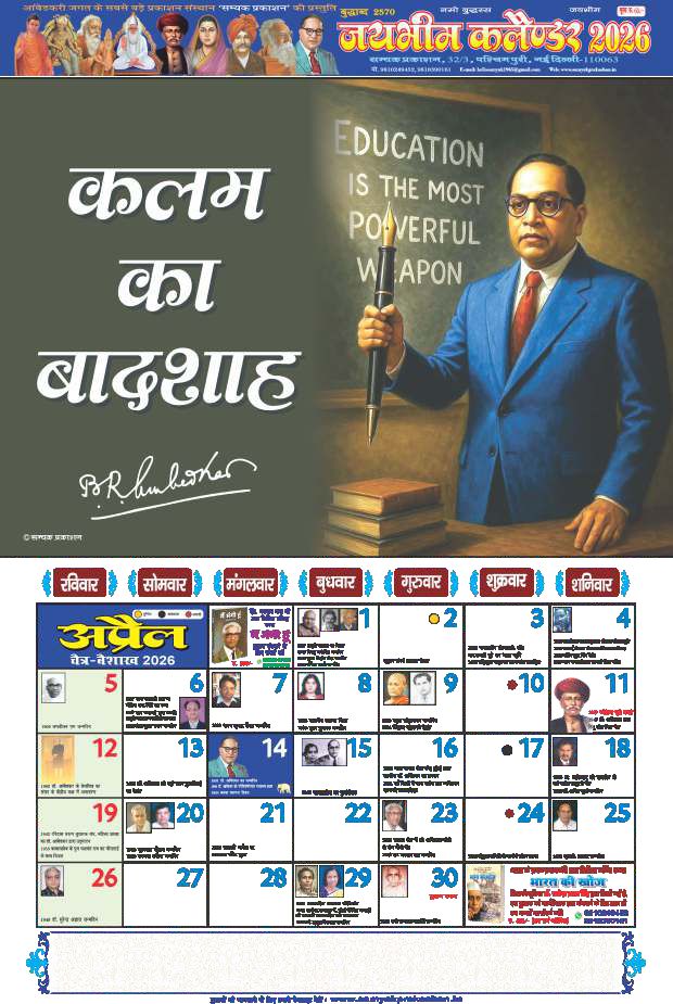 जय भीम आंदोलन की ऐतिहासिक तिथियों और घटनाओं को दर्शाने वाला यह कैलेंडर हर समर्थक के लिए अनिवार्य है। घर, दफ़्तर या कक्षा – कहीं भी इस्तेमाल करने के लिए उपयुक्त।